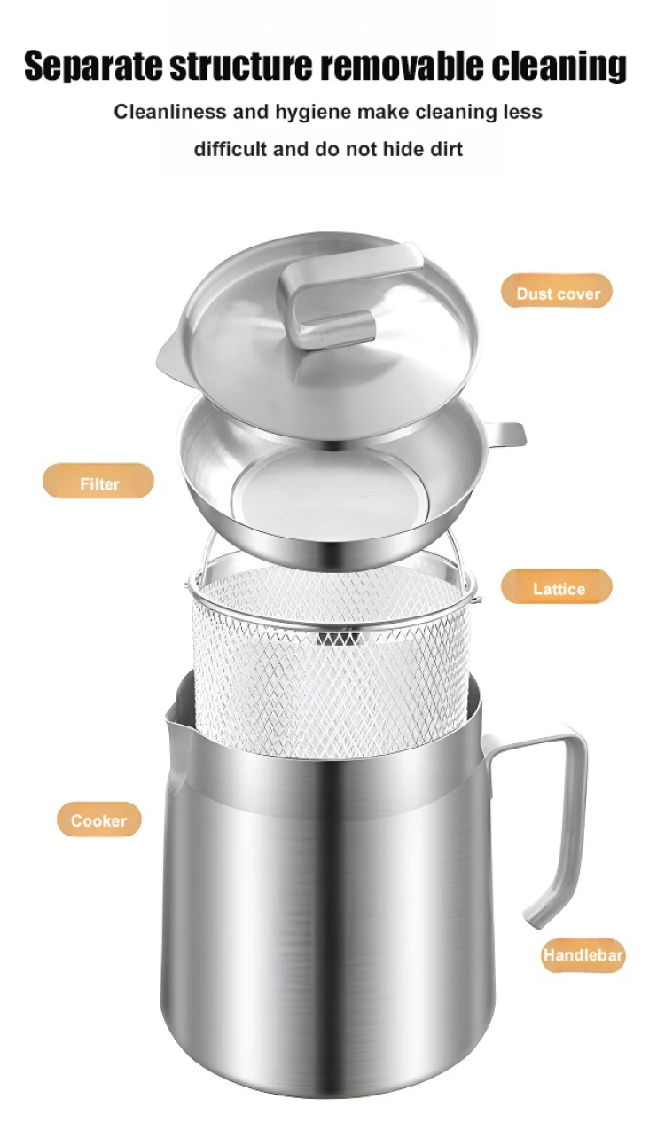 Household Fryer Stainless Steel with Filter Drain Fryer Household Kitchen Lard Tank Oil Storage Fryer Filter Kettle Multifunctional Oil Storage Residue Filtration Frying