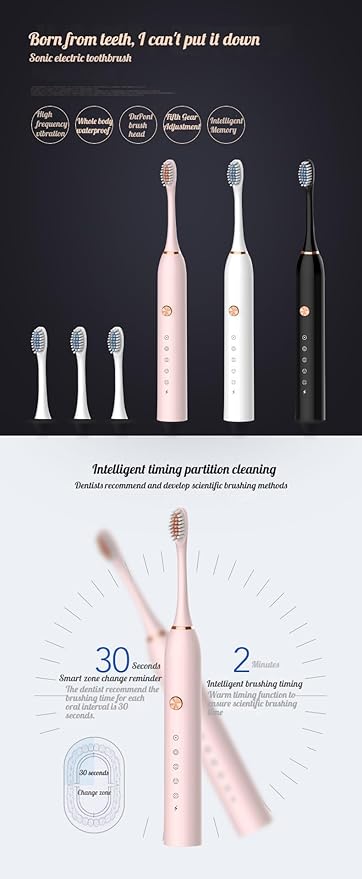 Sonic Electric Toothbrush – Get dentist-level cleaning right at home! 💎 Using advanced sonic technology, this toothbrush delivers up to 40,000 strokes per minute, removing plaque and stains more effectively than manual brushing. With multiple modes and a long-lasting battery, it keeps your smile brighter, fresher, and healthier every day.